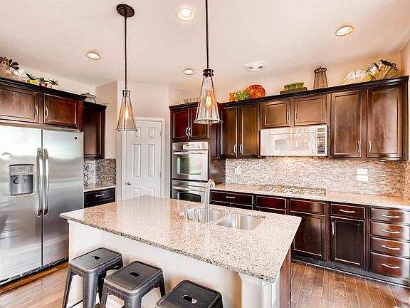 Gorgeous 2 Story home in the Meadows loaded with upgrades. Gourmet kitchen with refrigerator, double ovens, gas cook top, stainless appliances, granite, and tile back splash. Wood floors from kitchen into the great room with fireplace. Nook opens to large deck across the back with views. Master bedroom and 3 bedrooms plus convenient laundry and work/desk area. Powder on the main with wood floors. All 3 other baths have under-mount sinks; granite tops and tile floors. Fabulous finished walk out basement with theatre room and bar with frig and kegerator, plus bonus room. 3 Car garage. 4 bedrooms 3.5 baths.