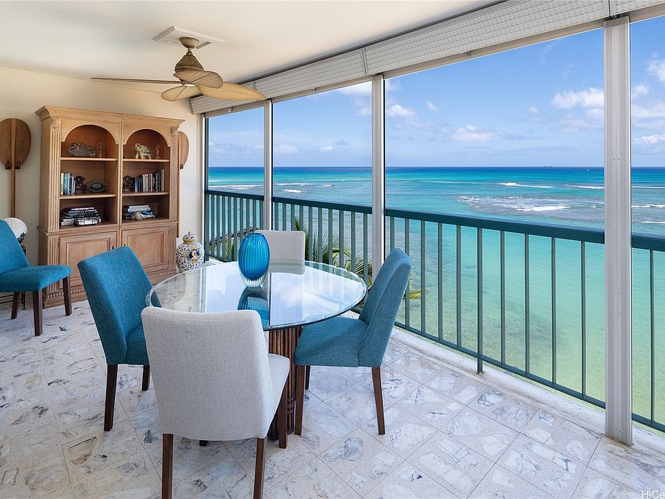 Sans Souci is an iconic curved building on the shores of Kaimana Beach at Diamond Head, Waikiki. Steps to the sandy shores of Waikiki's Beaches, adjacent to the Outrigger Canoe Club and Elks Club, Honolulu Aquarium, Kaimana Beach Hotel, world famous Diamond Head and Kapiolani Park. World class dining/shopping are a stones throw away while endless physical/water activities are at your feet. Lovely trade wind breezes cool this tropical pied-a-terre BEACH HOUSE which offers incredible sunset, coastline/city views from the oversized covered lanai, acting as an extension of the living area towards the ocean. Friday night fireworks from the Hilton Hawaiian Village can be enjoyed after watching the sunset from your oceanside lanai, all while listening to the waves crash on Kaimana Beach. A newly negotiated land lease extension until 2089! Unit 304 features one bedroom, one bathroom and is fortunate to have TWO PARKING STALLS! Sans Souci INC is a Cooperative Building with total monthly fee's of $5,396.17 which are ALL INCLUSIVE of taxes, lease rent, water/sewer, electricity and maintenance. MASSIVE PRICE IMPROVEMENT, SELLER MOTIVATED.