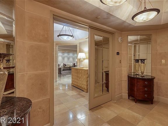 Turn-key Hollywood regency contemporary style residence. Elegant & posh interiors w/exquisite custom furnishings & timeless design. This gorgeous home in the sky features 2,805 sq.ft. + verandas, 3 bedrooms, 3 bathrooms, private foyer, extra large living room, fireplace & full strip view as a backdrop. The enormous balcony is ideal for outdoor lounge & dining. Get used to the best view in town from this unique professionally designed & customized condo. All closets are built-in. This desirable floor plan has two separate terraces including a laundry room w/sink & cabinets. The tower has a gym, spacious pool, BBQ, pet park, guest suite, conference room & complementary limousine services. Experience the Stirling Club, a private membership facility on property w/everything you want (hair, nails, barber shop, facials, massage, gym, Pilates & Zumba classes, in & outdoor pools, meeting rooms, Starbucks, wine cellar, cigar lounge, gourmet restaurant, ballroom) & everything your heart desires.
