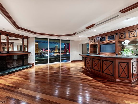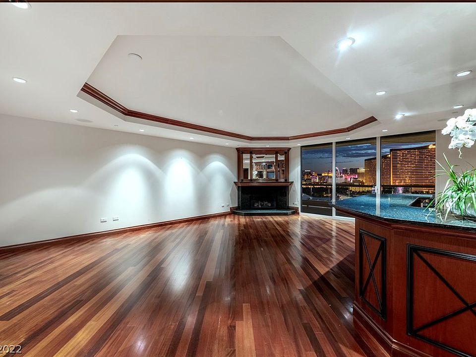 GORGEOUS UNOBSTRUCTED STRIP VIEWS!!!! PRISTINE AND BEAUTIFUL LARGE 3 BEDROOM UNIT WITH YOUR OWN PRIVATE LOBBY OFF THE ELEVATOR. THIS UNIT IS IN EXCELLENT CONDITION! IT WAS USED AS A SECOND HOME AND HAS MINIMAL WEAR AND TEAR TO THE UNIT. HIGHLY UPGRADED WITH GORGEOUS MARBLE AND WOOD FLOORING THROUGHOUT. CUSTOM BUILT IN ENTERTAINERS BAR WITH ADDITIONAL WINE REFRIGERATOR, CUSTOM CLOSETS, CROWN MOLDINGS, BUILT IN CABINETS IN BEDROOMS AS WELL. ADDITIONAL UPGRADED LIGHTING IN SOFFITS AND A BUILT IN SURROUND MUSIC SYSTEM. INCREDIBLE STRIP VIEWS WOW!!!!! THIS UNIT WILL NOT DISAPPOINT!