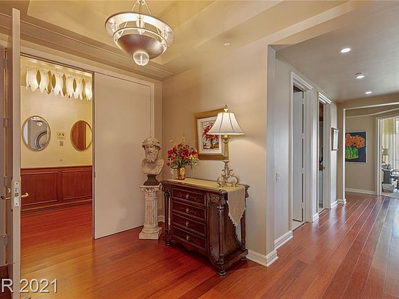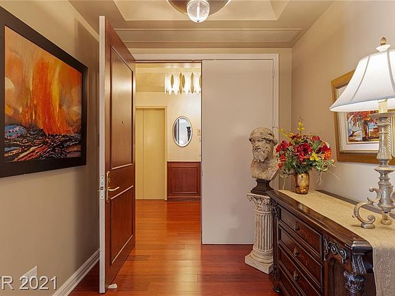 Stunning Penthouse level on the 27th floor. Unique opportunity 2,805 sq. ft. showcasing one of the best views of the strip, golf course, downtown, mountains & city. Large balconies & living room built in bar, customized ceilings, upgraded lighting & finishes, dining room for 8+. Floor to ceiling windows, 3 Beds, 3 Baths, 2 separate terraces including a laundry room sink & cabinets. This PH level has high ceilings, 2 parking spaces & 1 storage unit. Also the HOA fee includes: water, cable, gas, internet, valet, concierge, limousine service, security, management &+. The Stirling Club is located on the property grounds, a private membership club offering full spa service, salon, barber shop, massage, nails, facials & other treatments. The club features a well appointed gym, pilates & yoga classes, tennis & pickle ball courts, sauna, indoor & outdoor pools, gourmet restaurant, bars, cigar lounge, Starbucks, wine cellar & tasting room, large spaces avail for private functions & more.