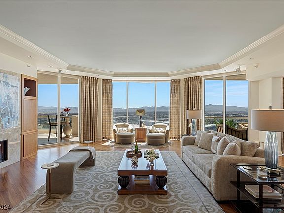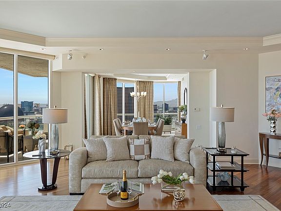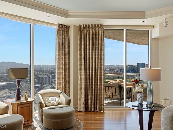 Elegance has a new address! New on the market magnificent penthouse on the 32nd floor. The residence features high ceilings, spectacular views of the Strip, Downtown, Mountains, & 2 Golf courses. Floor-to-ceiling windows & abundant natural light. The humidifier system keeps the 4,007 ft.² a comfortable environment. Gorgeous wood floorings! This home in the skies offers 3 en-suite bedrooms+office, large laundry & 3 spacious terraces. The HOA fee covers essentials such as; water, cable, gas, internet, valet, concierge, limo & more. The Stirling Club, located on the grounds, offers a Salon, Barbershop, gym, pickle-ball, Tennis, Pilates, restaurant, bar, lounges, creating the ultimate living experience. The breathtaking views from the penthouse Terraces offer a 300-degree panoramic scene. This penthouse is more than just a beautiful home, it's a lifestyle. Make Las Vegas your tax residency today & experience the ultimate security & easy living!