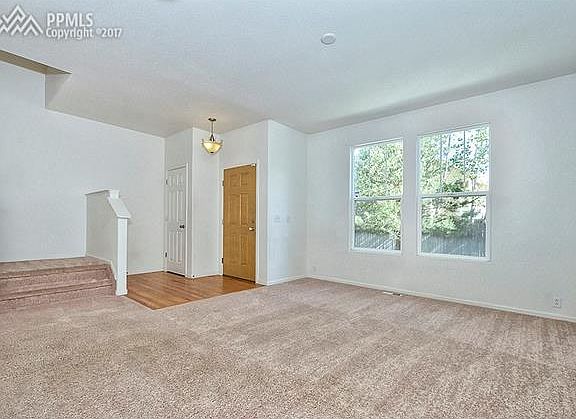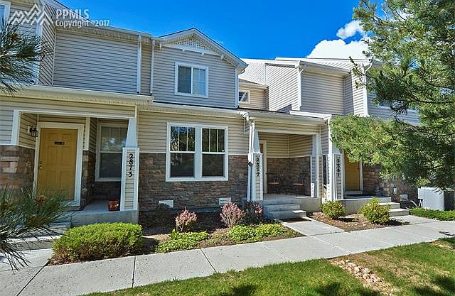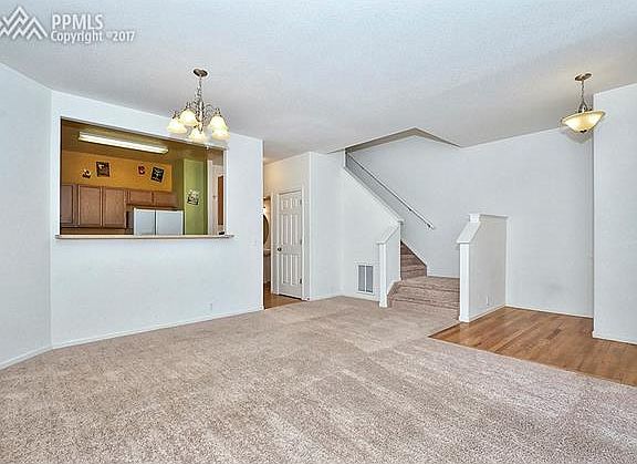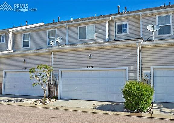 Well maintained outside unit with an attached two car garage! Hardwood entry, kitchen and powder main level bath. Large living / dining room combo. Both bedrooms are on the upper level, master with attached private full bath. Large secondary bedroom, additional full bath and laundry are on the upper level as well. Interior features include six panel doors, all kitchen appliances and the washer and dryer. Close proximity to all the South end amenities and Fort Carson.