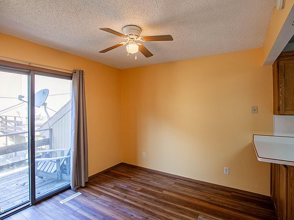 Welcome to this spacious three level condo in a quiet neighborhood in South Bismarck. The inviting main floor features a wood-burning fire place with a beautiful brick surround & updated flooring throughout, as well as a convenient half bath. Enjoy your morning coffee or grilling on the private deck just off the dining room. Upstairs you will find two generous-sized bedrooms with large closets and a full bathroom with large vanity. A second family room and bedroom with large windows can be found downstairs, along with the laundry room and more storage. This condo has a detached one-stall garage as well as an additional dedicated parking space. Association amenities include a basketball court and a lovely pool. Schedule a tour today!