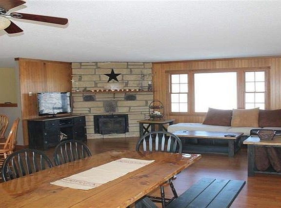 An update country home awaits you! Great location, quiet country setting and only minutes to town! Four bedrooms, 2 bath home features newly remodeled kitchen with cherry cabinets and solid surface countertops. Open floor plan with a wood burning fireplace makes it easy to entertain. Lower level has family/rec room with a gas fireplace, 4th bedroom and laundry access in the bathroom area. 2 car attached garage. Additional 14x42 shed with 220 amp service. Call listing agent for a showing today!