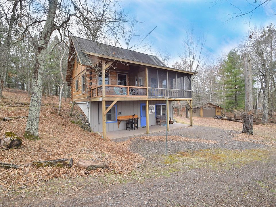 Charming Appalachian style hand hewn log home awaits! Sold turn-key w/all furnishings, canoe & gar. contents; everything you need! Perfect rustic retreat nestled in the woods, peppered with pines situated on 3.76 acres & 630' of level Yellow River frontage. 1+ car 24x24 garage for the toys & fun fish cleaning area on LL patio! 3 BR, 2 BA w/fully finished w/o bsmt. Vintage log interior w/chinking, log purlin accents, wide plank pine floors, open loft w/unique Birch limb handrails, vaulted pine ceilings, wood stove w/corrugated steel backdrop in greatroom. Screen porch & open deck w/metal wildlife inset handrails overlooking the river and not a neighbor in sight to the north. Fall in the love the minute you wind down the private drive to this sanctuary of tranquility, a river to canoe, kayak, swim & fish in and enjoy endless boating to Little/Big Yellow Lakes w/2 bar/restaurants.Snowmobile/UTV trails from this location & private assoc. w/another separate dock & boat launch area!