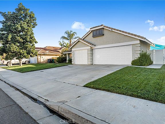 You have Arrived! Welcome to this highly upgraded 4 bed 2 bath single story home in the highly desirable city of Menifee. As you step through the front door, the open layout welcomes you into a spacious family and living room area. You’ll admire the open floor plan remodeled in dove gray/white with farmhouse-style laminate floors-to suit any decor-shown off with vaulted ceilings & lots of windows. Illuminated with LED recessed lights. To the right, a hallway leads to the first bedroom, laundry room where you'll find the door to the attached garage, as well as a well-appointed updated full bathroom with double sinks, and two more cozy bedrooms. Finally down the hallway, you'll find the master suite, providing a private retreat within the home. The master bathroom has been highly upgraded with new counter tops, cabinets, and hardware. Generously sized bedrooms with soft carpet. The kitchen has been thoughtfully updated - Glistening kitchen with single basin sink, designer faucet, white shaker cabinets, quartz countertops, gas stove, and SS appliances. The kitchen also offers a delightful view of the backyard. Speaking of the backyard, it's a true gem with several upgrades. Enjoy a shed for extra storage, mature trees providing natural privacy, 12 yards of beautiful landscaping pebbles, and awnings to enhance your outdoor experience. New fencing. New HVAC in 9/21. 3-car garage! This is a home that combines comfort, convenience, and the California dream. Enjoy the convenience of no HOA fees, LOW TAXES, and easy access to shopping and freeways, and within the desirable Menifee Union school district. Don't miss out on this incredible opportunity!
