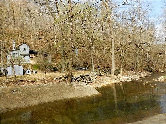 Stunning views overlooking Spring fed creek with lots of creek frontage. House is 1344 sqft plus approx 400' sqft for guest house. Adorable cabin interior like atmosphere with wood ceilings, stucco walls, office can double as safe room. Unique guest house completely furnished could be rented. Outstanding all year long creek view & sounds. Many building/sites, secluded & great for hunting. Some pasture property. Actual acreage is 19.2 acres.