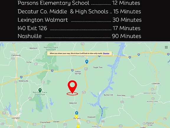 Beautiful traditional red brick home sitting on 5 acres in a quiet country setting with a spacious backyard. 3 bedrooms/2 bath. Public water and electric on site. No restrictions. Located outside of Parsons, a small town near I40 between Memphis and Nashville. Call today for a showing.
