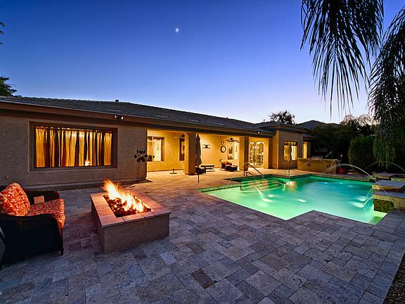 The classic style that a Toll Brothers Home is known for, is easy to see in this great floor plan. Imagine a large single-level home, sitting on nearly one-half acre, in a cul-de-sac, and backing up to a park. Honestly, it doesn't get much better than this! Guests will be sure to notice the architectural detail from the moment they are welcomed inside. Whether it's the warmth of light flickering from the radius fireplace or the panoramic view from many rooms onto the backyard oasis complete with heated pool/spa, sport court and large fire table. The absence of neighboring yards behind lends itself to a feeling of privacy and full enjoyment. Perfect for the multi-generational family, this flexible plan offers plenty of rooms with a variety of uses throughout. This home is a MUST SEE!!