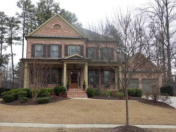 Home for Sale in Hidden Falls subdivision minutes from the Mall of Georgia, I-85 and I-985. A Perfect 10! 4 Sides Brick with rocking chair front porch. Large entry area. Separate living and dining rooms. 2 Story Great Room. Gourmet Kitchen w/loads of cabinetry and granite ctops, Center Island, Double Ovens, gas cooktop, desk area, and butler's pantry. Second front entrance with mudroom. Spacious Master Suite on Main; 3 additional bdrms upstairs. Beautifully finished terrace level incl...
