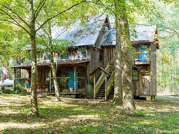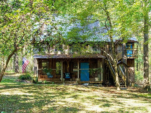 Welcome to the most charming, rustic with modern flare, cabin nestled on 8.47 acres of land. The property features a rustic look on the outside w/ some of the old barn wood inside with a mix of newly added modern touches. The first level has a newly added kitchen w/ granite countertops, stainless steel electric stove, microwave, dishwasher & Fridge, Tie backsplash and shiplap. New LVP flooring throughout the first floor along w/ a New Full modern bathroom w/ a barn door. There are two new windows added in the family room AND a newer WHOLE HOUSE CENTRAL HVAC system along w/ new plumbing through the whole house and new electrical added. There are still AC window units just used for backup or if you do not want to use the central HVAC system. The propane fireplace stove, in the family room, also works and is great for heating the house, if you don't want to use the Central HVAC system. A new, second rear staircase was added to access the NEW addition of the home that hosts a cute area for sleeping with it's own door, for privacy and access to a front small deck. As you make your way through the second level of the home, you will find another kitchenette along with the Master bedroom w/ a second family room area. The second level does have an area where a washer and dryer can be hooked up or there is an area on the main floor to hook up a stackable W/D. The second level also has a 2nd Full bathroom w/ a shower/tub combo w/ bead board walls and some original wood. There is a 3rd level w/ a separate loft area w/ a twin size bed. The cabin has county water but also has a well water system w/ a new pump, to be used for gardening. Seller ran lines to the garden area to be able to water that area. The property also includes a screened in gathering area w/ electricity & a gas grill, huge shed for keeping your farm equipment, another gardening shed w/ porch, another shelter for animals & a chicken coop. The home has 800 feet of road frontage, very private. CASH ONLY!