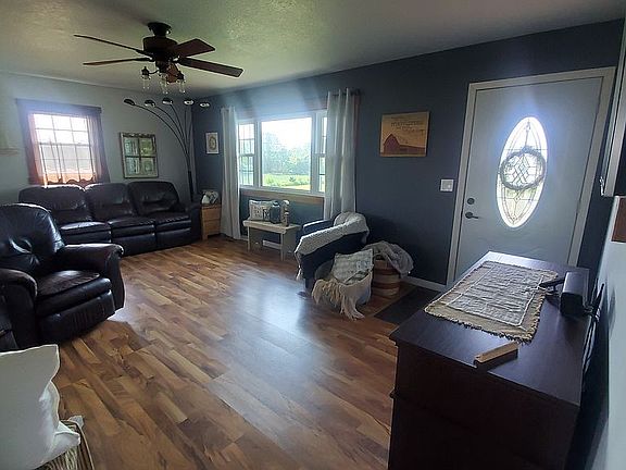 REALTORS & BUYERS AGENTS WELCOME. Total sq ft: 2704 Assessment has been completed by local realtor, $384,900 Home located on a quiet road only 5 miles South of Marshalltown in East Marshall school district. ONLY 1/10 of a mile of gravel one way. Bonus for this property, it's also agricultural zoned. This beautiful home features a master bedroom with walk-in closet, large master bath, a dream onyx shower, with main floor laundry, LVP flooring and a walkout patio all added in 2021. 90-95% new electrical and plumbing done, including new electrical and shut off to pump house with working well. Pressure tank for well was replaced in 2018. Also, trenched 220 electrical with its own panel to the barn. Home has a large eat in kitchen, with quartz island, main bath has a tile shower and floor, while 2 additional bedrooms have newer carpet. Several closets feature sliding barn doors to complete the modern farmhouse look! Lower level has been part finished in 2020 adding a 1/2 bath to the home. 3 stall, 36 x 22, attached garage with floor drains and mudroom to house, added in 2020. In addition to having a 500 gallon LP gas tank (owner owned), a Longwood woodburner in garage can be used for supplemental heat to home and garage which make for warm floors in the winter! 54 x 52 barn with new steel roof in 2012. This home offers many more newer amenities and has the best of country living. Call for a private showing!