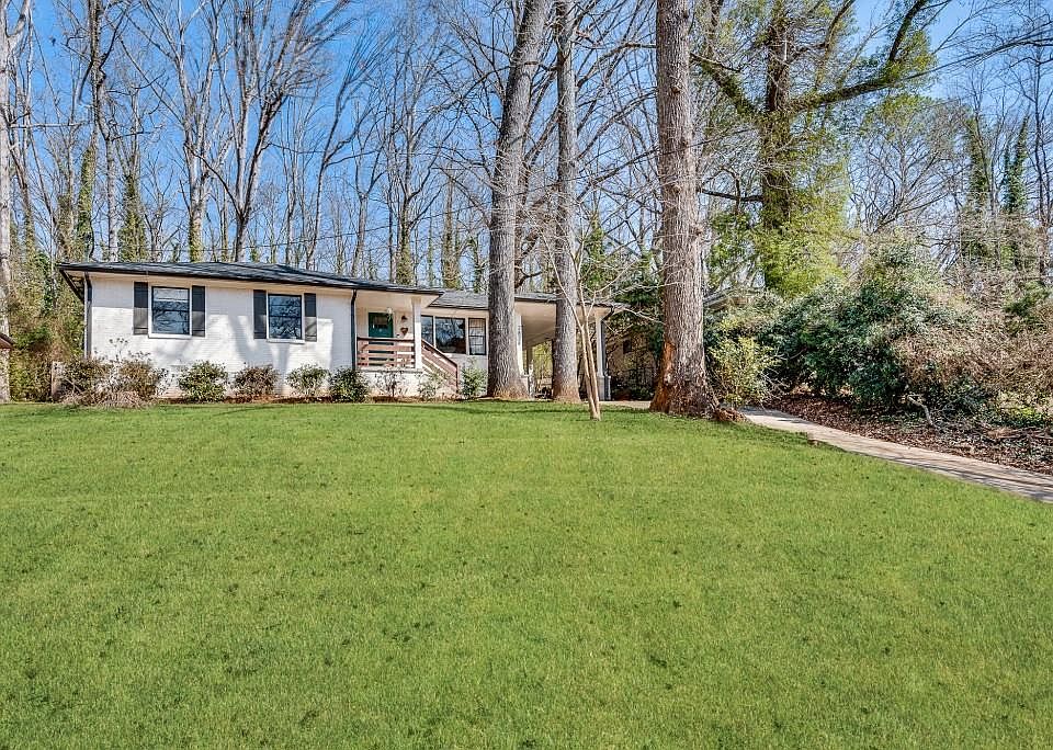 Do not miss this stunning, ranch style, brick home that boasts curb appeal upon first glance. This stunner is complete with original hardwood floors, a front covered porch, and a large private back patio with garden beds and blueberry bushes. Upon entering the home, viewers are greeted by impressive natural sunlight, coming in from every angle. The family room is open to the kitchen and has space for entertaining. The kitchen is open, hosts a large island with a wood accent, granite countertops, white cabinets, subway tile, and stainless steel appliances. The owner's suite has a large walk-in closet and a barn door for added style and charm. The owner's bathroom is equipped with granite countertops and a stunning walk-in shower with a glass door. The two secondary bedrooms are a generous size, having the ability to accommodate a bedroom, home office, home gym, playroom, you name it! The secondary bathroom is vast and classic with its' white and black tile floors and subway tile backsplash in the shower/tub combo. The home is conveniently located to public transportation, schools, shopping, major highways and more. Thank you for showing this gorgeous home!