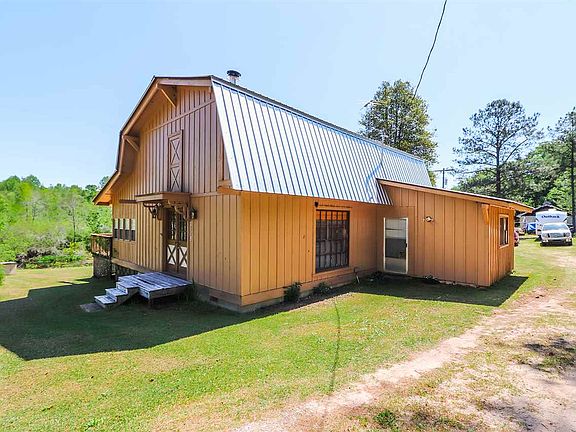 Make your appointment today to view this property that sits on approx 5 acres of land with a creek. Two bedroom two bath home. Bat Cave Wood burning stove. Master on the main floor. Livingroom has hardwood floors. Separate laundry room. Sunroom on the back of the home. Gorgeous deck to relax and watch the creek. Home has a metal roof installed Nov 2019. Updated plumbing. New well pump. Artisian Well. Two barns that are powered by one meter. Large barn is 25x50 with concrete floor. The land has a pecan tree, fig tree, 2 pear trees, mulberry tree, muscadine grapes, scuppernong grapes and a blueberry bush. Land is partially fenced.