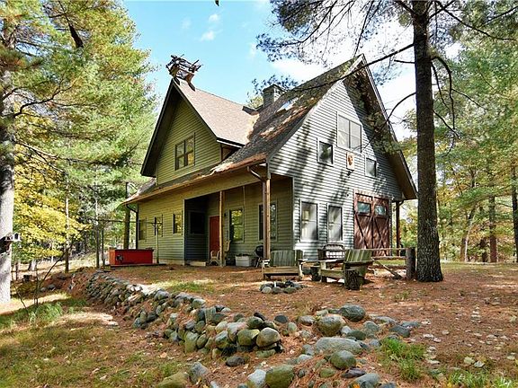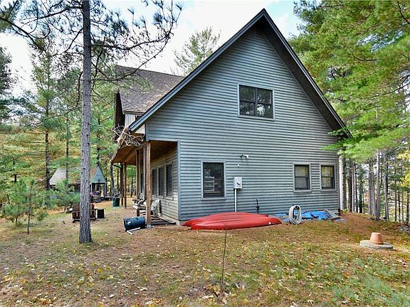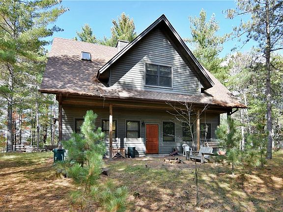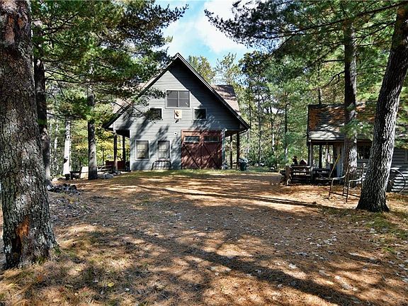 Located in the heart of Burnett County recreation paradise on 8.18 acres is this is this aesthetically pleasing chalet style cabin just waiting for your finishing work! Most of the big ticket items for the cabin have already been completed and includes; interior spray foam top to bottom, most electrical and plumbing work completed, efficient in floor heat, drilled well, and conventional septic system. The floor plan features main level kitchen, living, dining and common bath and the upper level has a master bedroom with tons of natural light, bath, 2nd bedroom, and loft. Also included is an adorable bunkhouse! The cabin sits on a gorgeous wooded lot with towering pines and is perched up on a hill for excellent views all year round of the Yellow River. With some work, you could create a path and boardwalk to the river which also has boat-able access to the largest lake system in the county; Little and Big Yellow Lakes.