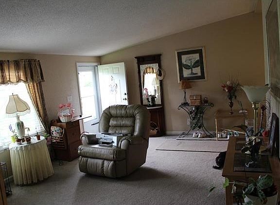 Triple wide home on a short wall foundation, sits on 3 beautiful acres. Has a detached 2 car garage. 1800 sq. ft., wood burning fireplace, silestone counter-tops in kitchen with center island. Updates include roof, windows, siding and HVAC. Master bath has a big jetted tub with separate shower and a second door to the walk in closet. Split bedroom floor plan. Outside is nice and level with lots of trees in the back for privacy. This home is a must see, you will not be sorry you took the time to see it! Look at this home first and your search will be over.