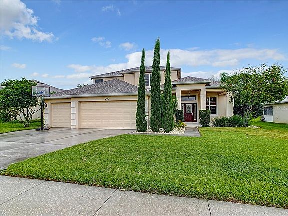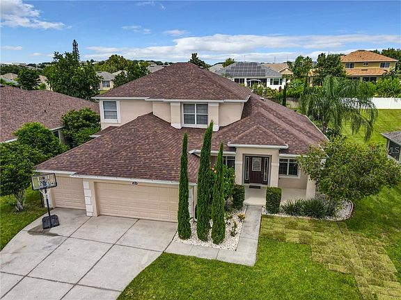 Welcome to the hills of Clermont. This exquisite floor plan boosting more than 3000 sq ft pool home is located in The Reserve at Lost Lakes. Captivating South facing covered porch and an entry way with leaded glass panel front door with leaded glass side panels and glass transom lets in plenty of natural light into this lovely home. Foyer entrance with ceramic tile flooring and open walls allows the sunshine to flow through. This area splits into formal living and dining areas or use these spaces to accommodate your family needs. Another great feature here is the open living area with carpet flooring, cathedral ceiling and bright ceramic tiled kitchen with an island & eating area. It is like your own oasis here as large windows are not overlooked and show greenery from the yard with citrus trees, avocado and more of mature landscaping. Most spacious master bedroom is downstairs and has every woman's' must have big walk in closet. Master bedroom here is amazing not only for size, but also for a bonus area/nursery/ office, it also has sliding glass doors to the outside covered patio. Second floor boosts expansive loft area and 3 other bedrooms and 2 full baths. All carpet flooring upstairs and two of the second floor bedrooms share Jack-n-Jill bath. Pool area will be your favorite to hang out spot- large covered patio, in ground screened in pool, full pool bath and a sauna that stays! Not your average patio at all! and this home has a brand new roof! Schedule your private showing and come see this beautiful property today!