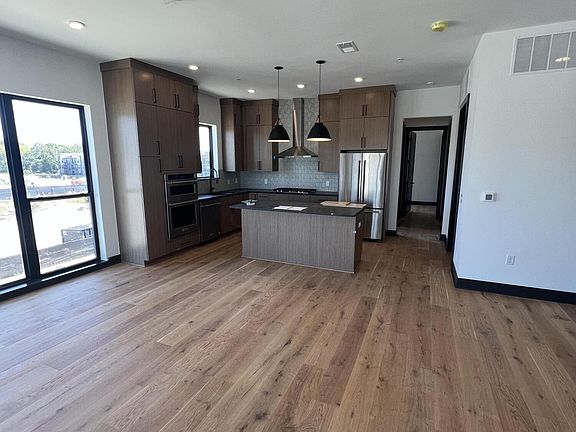 This exceptional property boasts a large and connected greater room space, creating an inviting and versatile living area perfect for relaxation and gatherings. The unique design finishes throughout the home add a touch of elegance and charm. Enjoy seamless indoor-outdoor living with the multi-slide pocket door that effortlessly opens up the entertaining space, blurring the lines between the interior and the outdoor patio spaces. Revel in the beauty of nature with breathtaking views of the park and the vibrant community surrounding you. Step out onto the additional 200 SQFT balcony space and soak in the fresh air.