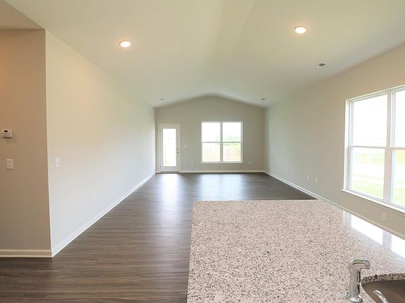 This is the former model home in Masterson, The Victoria Point, part of the Trend Collection by Ball Homes, is an open layout ranch plan with three bedrooms. A vaulted ceiling spans the length of the home's shared living spaces. A versatile flex area off the entry adjoins the kitchen and breakfast area at the center of the living area, and a large family room overlooks the back yard. The island kitchen offers counter dining space and a storage pantry. Aristokraft Ellis Stone Gray cabinets with a Black appliance package including a side by side refrigerator. Full tiled wall backsplash. Bianco Estrella granite. The master suite and bedrooms two and three are gathered off a shared hall, with access to the hall bath. The master bath has a 5x3 tiled shower w/fiberglass pan. The garage entry passes through the utility room to the shared hall, offering a direct entry to the more private spaces of the home. Nice covered back patio for your summertime parties.