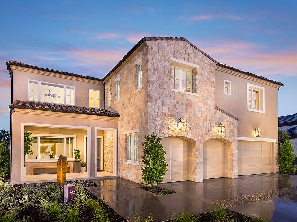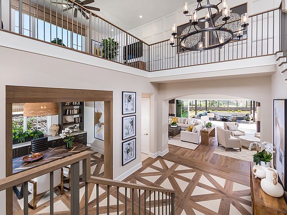 The Willow Residence (5409 sq. ft.) is a home with 6 bedrooms, 6 bathrooms and 4-car garage. Features include great room with covered loggia, dining room, loft, primary bed upstairs, study and walk-in closets.