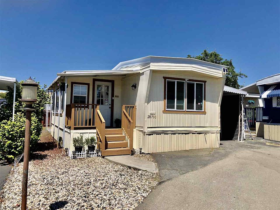 Beautiful Family Mobile Home in Great Location!!! Beautifully updated 2 Bedroom and 1 Bath mobile home in a Family Mobile Home Park. Kitchen has been Updated Beautifully. Bathroom updated with double sinks and stone countertops and shower over tub. New Roof with life expectancy of 30 years with Warranty transferable to new owner. Wall Air Conditioning unit in Dinning/Kitchen Area. Gas Centralized Furnace. Carport for up to 3 small cars. Kitchen features and includes Gas Range, Microwave over Range, and Refrigerator. Electrical Washer and Gas Dryer are included in the sale. One Bedroom with Large Closet. Cult de Sac Location. Less than a block from the Community Pool and Club House. Only 5 minute drive or 20 minutes walk (0.9 mile) to Hayward BART Station. Only 2 minute drive or 10 minute walk to restaurants and shops.