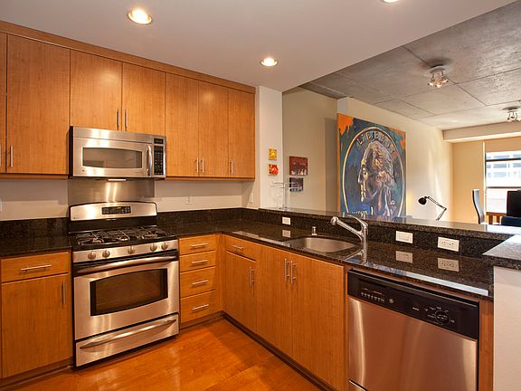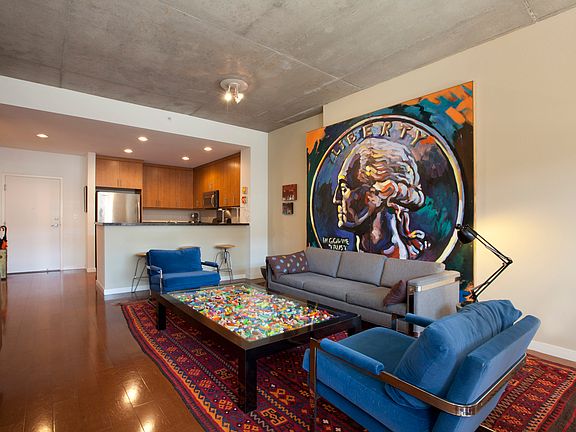 Light-filled 1-bedroom, 1-bath condo in Jack London Square. Built in 2006 with an eye for style. Loft style living; high ceilings, hardwood floors and modern finishes. In-unit laundry, dedicated parking and storage and a huge beautiful roof deck with barbecues and pergolas. Located blocks to the SF Ferry and Lake Merritt BART, while Blue Bottle and the Chop House are just around the corner. Shopping, dining, farmer's market and culture are all within a half-mile radius. An incredible value in one of Oakland hottest neighborhoods!