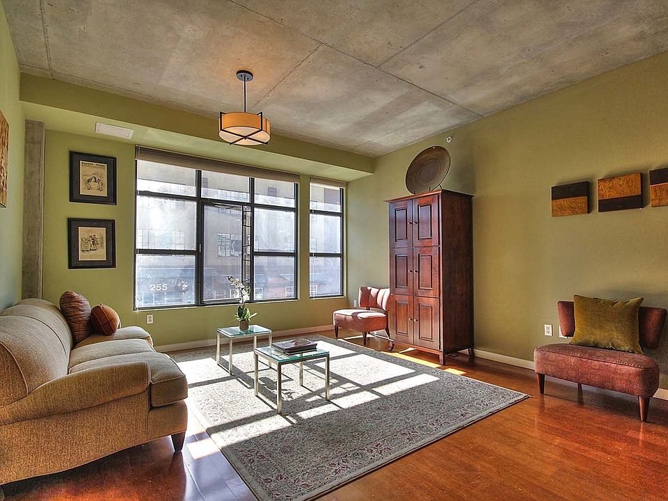 Modern Living in Jack London Square This modern split bedroom floor plan has beaming wood floors, 2 spacious bedrooms, 2 updated bathrooms, and cool concrete ceilings. The open floor plan with windows nearly to the ceilings welcomes natural light into the unit. An amazing kitchen with plenty of cabinet space features granite countertops accompanied by stainless steel appliances. Other features include 2-car tandem parking, storage, and a common roof deck where you're greeted with observation seating, lounge chairs, and a full kitchen with dinner seating. It's truly a fabulous amenity in this sunny and central location. 288 Third Street in Oakland is a six-story 91-unit loft-style condominium building developed by Signature Properties and designed by Levy Design Partners. Located in the Historic Warehouse District near Jack London Square, community amenities include gated underground parking, a barbecue area, and a rooftop garden. With all major modes of transportation, such as the 880 freeway, AC Transit, BART, Amtrak, and the San Francisco Ferry all close at hand, accessing multiple Bay Area locations is convenient. There are many options for dining, shopping, and entertainment in the surrounding neighborhood as well. You can visit famous Yoshi's for some jazz and Japanese food, the weekly Farmers Market for some gourmet goodies, or simply hang out in one of the many local cafes for an afternoon coffee. 2 bedrooms, 2 bathrooms 1,278 sq. ft. per public records Open floor plan Updated kitchen and bathrooms Kitchen features stainless steel appliances Walk-in closets Hardwood floors High ceilings Washer and dryer in unit 2-car tandem parking in underground garage Building features roof deck with views, outdoor kitchen, and seating HOA dues: $507 per month
