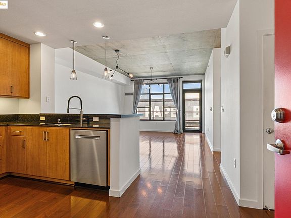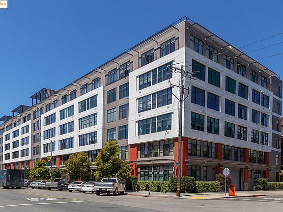 Transparently priced! Access the best of urban living in this quiet spacious unit with a private balcony. Catch a live show at Yoshi’s, hop on BART minutes away, grab a cup of joe at Bicycle Coffee, load up on local produce at the Jack London Square Farmers market, and savor the many options for dining and shops just moments away. The well-appointed kitchen, boasting sleek stainless steel appliances and bar seating, opens to the dining and living room, all of which are soaked in natural light. The wide balcony, accessible from the living area via the dual pane glass door, offers an outdoor perch with peekaboo views of the downtown Oakland skyline. The sunny bedroom includes a spacious walk-in closet lined with an organization system. The adjacent bonus room provides space for an office or exercise room. In-unit washer and dryer, deeded storage space and secured parking spot. Communal areas include a roof deck for BBQs and entertaining, a private dog park, and secure Amazon lockers in the lobby.