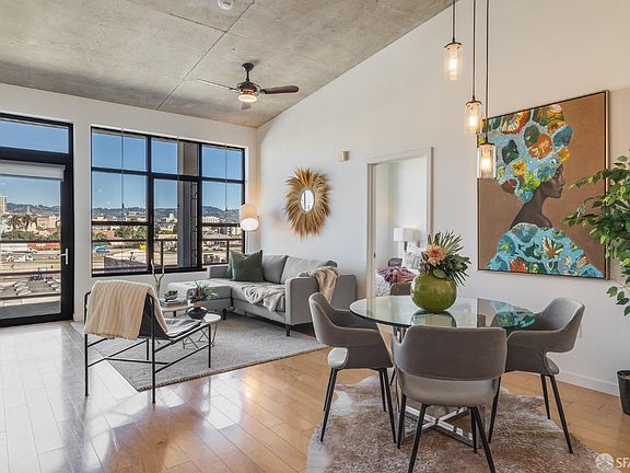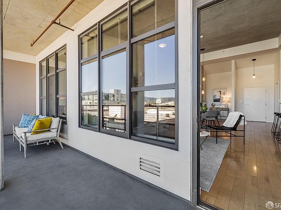 Top floor condo with 2 baths, an office alcove and a large, private balcony with city views. Secure gated parking space and storage unit, in-unit laundry, ample closet space, updated flooring, granite kitchen counter, stainless appliances. Spacious, open floor plan with high ceilings and exposed concrete gives a modern, urban vibe. The fabulous roof deck with views over Oakland to SF features a built-in kitchen/BBQ and multiple dining/lounge areas for gatherings. In the heart of vibrant JLS, just steps to shops, restaurants, wine bars, breweries and the farmer's market. Convenient to Lake Merritt BART, Amtrak, SF ferry, freeways. Dog friendly (no size or breed restrictions), well-managed, modern elevator building with secure package lockers and access-controlled entry. One of the most sought-after buildings in the area. Conde Nast Traveler just named Oakland the "top food city in the U.S." and you can be right in the heart of it all!