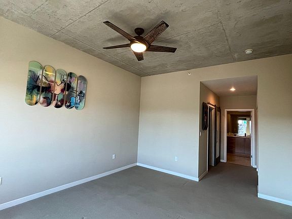 Jack London Square 2 bedroom + office, 2 bathroom penthouse with protected views on the quiet side of the building. Sunlight floods the huge primary suite which features a custom walk-in closet plus second oversized closet. The luxurious primary bathroom has an extended shower and dual vanities. The second bedroom includes a custom walk-in closet and is positioned for privacy. Bonus space makes a great office! Prepare gourmet meals on the gas range and enjoy upgraded stainless steel appliances, tons of storage, and a serving ledge overlooking the open dining / living space. Appreciate the industrial chic finishes like concrete ceilings and wall accents, wood floors, installed ceiling fans, and contemporary lighting. In-unit laundry. Tandem parking in shared, secured garage. Additional secured private storage. Entertain guests on the rooftop deck with BBQ / outdoor kitchen and panoramic views. Convenient access to deck and garbage shoot from unit. Plenty of street parking for guests.