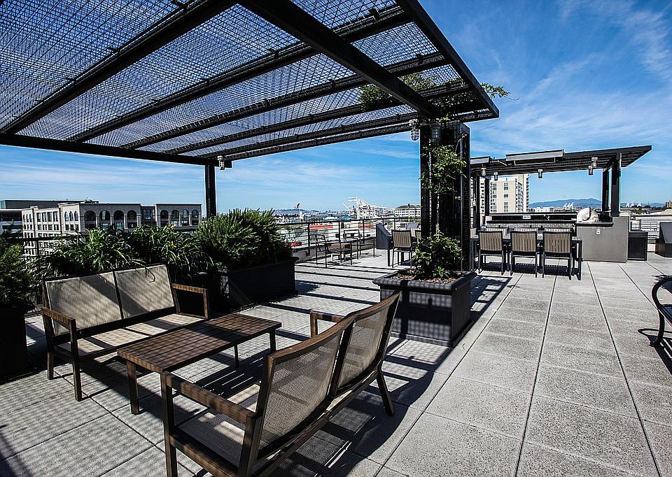 Welcome home! Presenting a modern upscale condo with incredible sunlight! Featuring a panoramic view of the city and an open floor plan with sleek modern details. The kitchen offers stainless steel appliances, granite counter tops, and generous cabinet space. New porcelain tile floors throughout and many recent updates. In unit washer/dryer and a spacious master suite with an en-suite bathroom and a walk-in closet. Take advantage of a spacious and comfortable floor plan and then head up to the common roof deck where you re greeted with observation seating, lounge chairs, and a kitchen with dinner seating. It s truly a fabulous amenity in this sunny and central location. With a walk score of 96, you won t have to go far to find what you re looking for (blue bottle, chop bar, beer revolution, forge, plank, beer revolution, just to name a few). You ll be in Jack London square with Chinatown and downtown nearby. Its only few blocks to the 880 onramp or a 10 minute walk to lake Merritt BART. The Broadway shuttle is very close for free access to Chinatown and uptown. One parking space in secure underground garage available for tenant. All information deemed reliable but not guaranteed. Listed by Cerda-Zein Real Estate, Lic #01878914