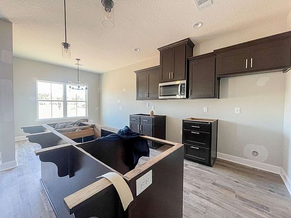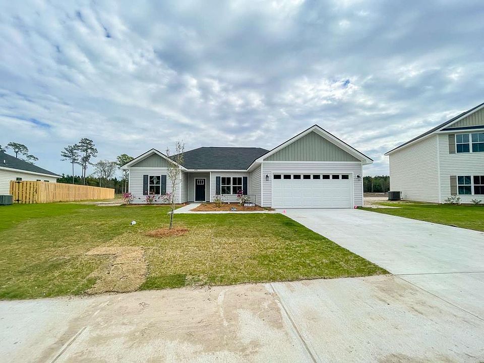 Caitlin plan with 4 bedrooms in Heritage Pointe! Ranch-style home conveniently located in Hinesville near local area schools, multiple gates to Ft. Stewart & several shopping & dining locations! Sitting on the edge of Hinesville, Heritage Pointe is conveniently situated for a quick commute to I-95 & Hwy 17! The home features a central living space upon entry with an open concept! The family room opens up to the eat-in kitchen. The kitchen also features rich stained cabinets, granite counters & stainless appliances. Plank flooring through the living space! 3 bedrooms & a hall bath can all be accessed from the family room. The master suite is split from the rest of the bedrooms & lies off the kitchen area. The master features a vaulted ceiling, walk-in closet & private bath. The master bath includes a soaking tub & separate shower as well as a dual vanity.