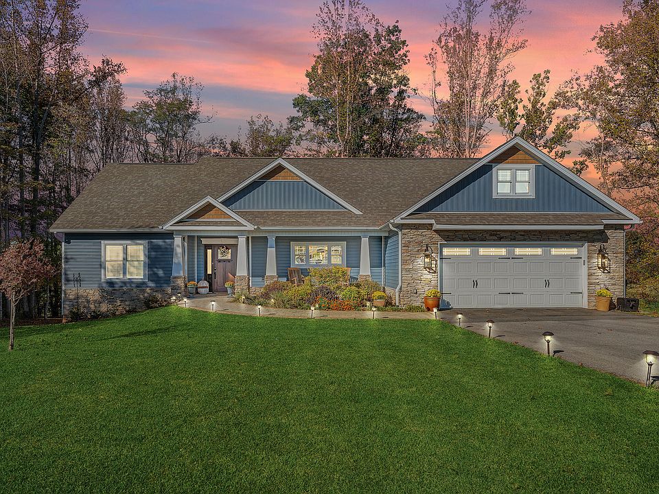 YOUR DREAM HOME!! This custom built, three years young gorgeous craftsman style ranch is located in the sought after subdivision The Reserve at Westlake. One-floor living with newly finished full walkout basement. Privacy, Amazing views of the golf course and ponds, making this lot one of the best. Five bedrooms(on a three bedroom septic) Two full, two half baths. Basement is roughed in for a future wet bar and shower.Large Beautiful kitchen with quartz countertops and pantry. Upgrades include appliances, covered deck, three inch white oak solid hardwood floors on main level, pavers on front porch and walkway ,expanded craftsman style columns, trex decking, designer lighting, gutter guards, custom designed fireplace and buried propane tank. Adjacent to Copper Hill Public Golf Course. Membership for the pool can be purchased for around $500 a year.
