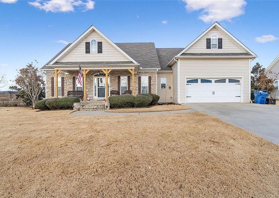 One level living! This Modern Country Craftsman boasts an open concept but cozy layout paired with a split bedroom floor plan! Hardwoods throughout the main living area guide you into the vaulted family room with a stone stack fireplace. Country kitchen features white cabinets, stainless steel appliances, and breakfast bar. Oversized master with sitting area & master ensuite features double vanities and spacious walk-in closet! Upstairs bonus room could easily be a 4th bedroom! Private deck overlooks spacious, level back yard that backs up to farm land! Purchase Worry-Free with a Brand New Roof!!