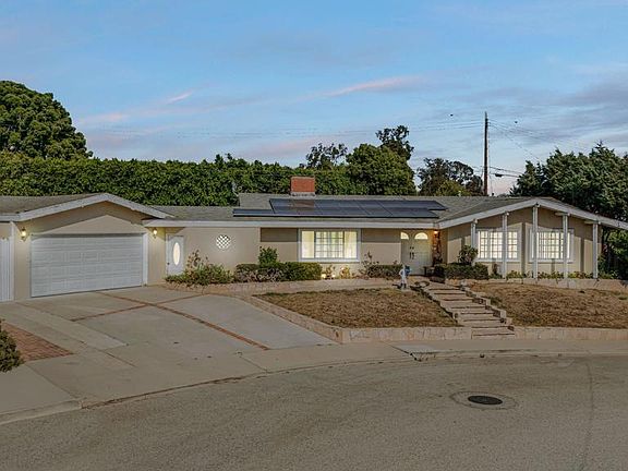Welcome to this stunning single-story residence in Ventura, offering 2,289 sq ft of thoughtfully designed living space on a generous 10,454 sq ft lot. With 5 bedrooms and 3 full bathrooms, this home blends comfort, functionality, and modern style in a highly desirable location.Step into the inviting living room, where warm cherry-toned floors and a cozy fireplace create an ideal space for relaxing or entertaining. The gourmet kitchen features crisp white cabinetry, a center island, ceiling-mounted pot hangers, stainless steel appliances, and a double oven, perfect for the home chef.Adjacent to the kitchen, the dining area boasts its own fireplace and direct access to the backyard, where you'll find a refreshing pool, a picturesque shell feature, grassy and paved areas, and a brick-built barbecue, perfect for outdoor gatherings or peaceful afternoons.The spacious primary suite offers a mirrored closet and an en-suite bathroom with timeless design elements. Additional features include a dedicated laundry room, a two-car garage, and a wide driveway with ample parking space.Located in a quiet, established neighborhood, this home is just minutes from top-rated schools, beautiful parks, scenic hiking and biking trails, and Ventura College. Enjoy the convenience of nearby amenities while living in a peaceful and private setting.Don't miss the opportunity to make this exceptional Ventura home your own!