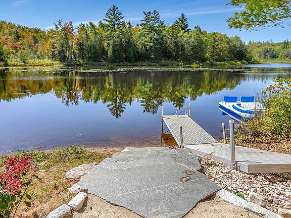 Imagine your own private Vermont resort getaway! Nestled on 12 peaceful acres, this property offers the perfect blend of relaxation, recreation, and convenience. Spend summer days swimming or paddling on your private pond, relaxing on the sandy beach, soaking in the hot tub, or unwinding in the sauna after a workout in your home gym. Evenings can be enjoyed fireside under the stars. The main residence boasts a flowing floor plan designed for entertaining, with large windows filling the home with natural light and framing water views from nearly every room. A brand-new septic system, built for seven bedrooms, ensures comfort and space for all. The oversized two-car garage provides ample storage for all your outdoor gear. Set apart among the trees, the guest cottage offers its own sense of retreat with vaulted ceilings, an open living space, two en-suite bedrooms, and an additional two-car garage. A short walking path leads directly to the water’s edge. Located less than a mile from Peru’s charming Hapgood Store and just 2 miles from Bromley Mountain, this property truly offers four-season enjoyment in the heart of Vermont. The current owner benefits from strong rental income when the properties are not being used for personal enjoyment