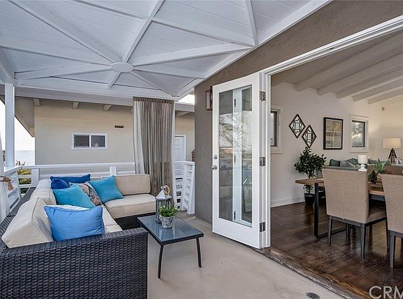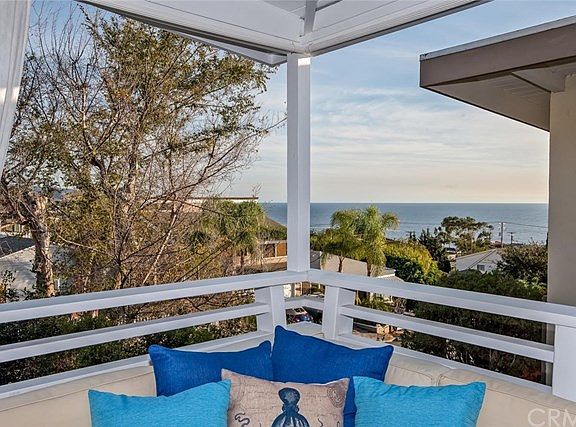 Don't just dream about a Laguna cottage-live there. A remodeled classic beach house, sits within a short distance from beaches and downtown, yet just far enough away to avoid the noise and crowds. To the north (if you have to commute) Newport Beach is just six miles away. Close your eyes and you'll hear the surf from the master suite of this inviting, clean lined 2 bedroom 2ba home. Awake each morning to a stunning ocean view from your front deck that extends the entire width of the home and functions as a large,completely covered open air living room.At the back of the house a companion sun deck overlooks the full-sized, landscaped rear yard that has privacy and view of Catalina Island. Adorned with open beamed ceilings, hardwood floors, custom French doors, an intelligently upgraded kitchen, using Viking gas stove surrounded by limestone and wood counters and an ingenious laundry slyly hidden way in what appears to be an ordinary hall closet. Plenty of extra storage under the house is a plus, (just the place for surfboards or kayak) and highlights the fact that this is a residence that clearly more than the sum of its parts. The two car garage and large driveway are perfect for vising family or guests. So pack your swimsuit and sunscreen, bring your toothbrush and start living the California dream. Here's a tip: 4th of July fireworks, viewed from the back deck are the best seats in town!