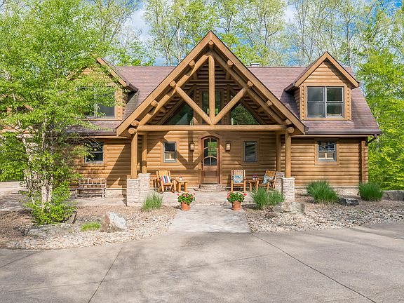 Nearly $200K PRICE ADJUSTMENT!! Being sold *fully furnished*! You've found the perfect, secluded and relaxing place for safe yet gorgeous social distancing! Less than 90 minutes from Louisville, under 2 hours from Nashville, and just an hour from Bowling Green is this custom-built log home on Nolin Lake situated on 2.5 acres with 19 ft gable ceilings, 4 bedrooms, 3 full baths, 2 half baths, and an open floor plan! Located in the gated community of Greensward III, NO expense was spared by the only owner of this home. The paved winding drive opens to the beautiful native hardscape showcasing the lake home with extended front porch and 2.5 car garage and striking log pergola. Once inside, a peaceful calm takes over as you see the soaring ceilings, a cat-walk between the upstairs bedrooms and the gorgeous views which compete with the 2-story stone fireplace for the focal point of the vaulted living room. Pour a glass of wine at the bar (which includes built-in icemaker) and head outside to the expansive mostly-covered multi-level deck overlooking gorgeous views, the calm sounds of nature, and the lake. The enormous kitchen is ideal for making family meals, outfitted with stainless steel appliances, gas range, granite counters, slate backsplash, breakfast bar, and plenty of custom cabinets. Your master bedroom and attached bath located on the first floor opens with french doors to the relaxing covered deck perfect for morning coffee and a good book. Two additional bedrooms and full-bath are upstairs capable of sleeping 4 in each room. Both have sweeping views! Above the garage is the 4th huge bedroom with its impressive vaulted ceilings and outfitted as a bunkroom with 5 *queen size bunk beds and 2 queen futons capable of sleeping 24! (Or remove the bunk beds and create an additional guest suite!) A full bath and half bath serve this expansive room as well. The unfinished walkout-basement with 9 ft ceilings and stunning concrete patio is already plumbed for a full bath, HVAC in place, electric already ran to walls and ceilings making it an easy finish for an entire 2nd (or 3rd!) guest suite. An additional garage for lake toys, golf cart, etc, is located in basement as well. Even more amenities include Geo-Thermal HVAC, INCREDIBLE lighting inside and out, an outdoor shower, boat slip at community dock which conveys with property (with COA approval), stepped path to the stone-built fire pit... the list goes on and on. Did I mention it's being sold FULLY FURNISHED? This home is truly turn-key!