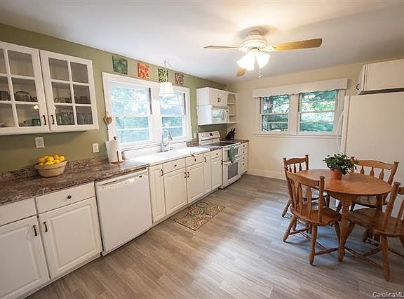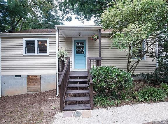 Charming cottage tucked away from the road within mature trees. This home is on a "flag lot" with a partially shared drive that gives it privacy away from the street. It has a large fully fenced back yard with a stone fire pit. Many updated features, fresh paint, hardwood, vinyl and tile floors. The spacious eat in kitchen has newer cabinets with an antique farm-style sink, dishwasher and built in microwave. Practical "mud-room" entrance with laundry. Spacious living room with arched entryways. Relax on the private back deck overlooking yard with some westerly winter views of the mountains. This home is a rescue! It was moved several years ago from neighboring property that was being converted to parking lot. Owner is NC real estate agent.