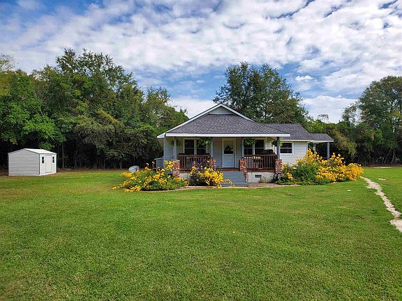 BEAUTIFUL 2 bed / 2 bath cozy home that sits on a nice 1.35 acres down a private drive, featuring a brand new roof and well. This stunning home has gorgeous real wood flooring throughout and tile in the kitchen / bathrooms. The kitchen offers a breakfast bar, appliances, separate dining area, spacious great room, and large windows letting in an abundance of natural light. The master bedroom has a walk-in closet in the bathroom following a charming tile backsplash behind the sink. The laundry room is off the great room and has access to the back screened in porch near the carport. In the front yard there is a large shed perfect for storage. You do not want to miss out on this gorgeous home! It won't last long!