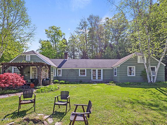 A RIVER RUNS THROUGH IT: Charming and enchanted home. 4.8 acres of lush green lawn with the sparkling Sackett Brook meandering through. This lovely single level home has 3 or 4 bedrooms and is perfect for the growing family or downsizing adults. The open plan living/dining area has loads of light with French Doors to the patio. A family room allows you to get away and relax. The rocking chair front porch, side patio and fire pit area are lovely places to relax and sip your favorite beverage with friends and family. This wonderful south east location is convenient with privacy, yet minutes to downtowns of Lenox and Pittsfield. Plant a garden, let animals graze or chickens wander. It is the perfect property for a small farm within the city limits in this ''Right to Farm community.
