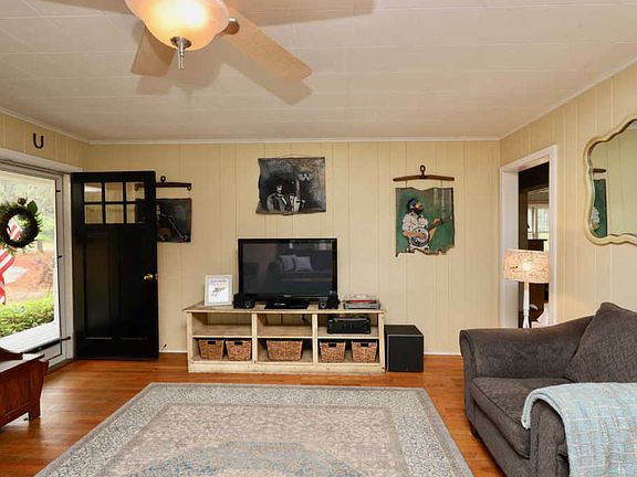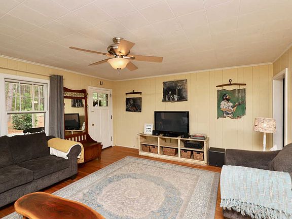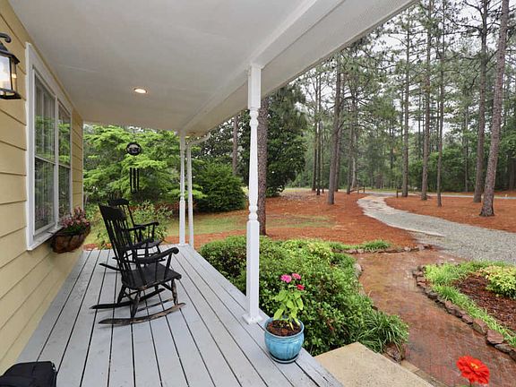 Updated home on 2 acres with gardens, chicken coop, rec room and great outdoor living space! No HOA! This is country living at its best! Property is surrounded by large tracts of land and offers peace, quiet and privacy. Various fruit trees including fig, peach, blackberry, muscadine grapes, and butterfly bushes. Eat-in kitchen with tile floors, pantry and office area off kitchen. 2 BR's on main level with hardwood floors. Full bath with tub/shower and tile floors, 1/2 bath and laundry, mudroom. Finished lower level offers spacious rec room plus workshop/garage. Covered front porch, nice big backyard with fire pit, deck, and dry storage under deck. Hardie board siding recently painted. Current owner sells pinestraw annually for approx $400.