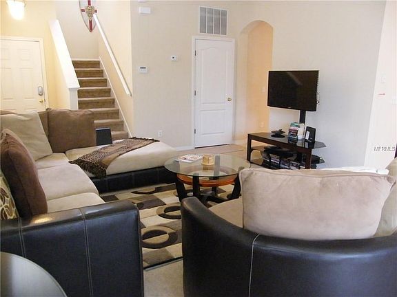 Nicely appointed and immaculately maintained 2 Story Pool Home in Sandy Ridge Subdivision. Swimming Pool has Florida glass on bottom panels and backs up to tall green shrubbery for extra privacy. All bedrooms are upstairs, including master and 1 en-suite. Used purely as a second home, property comes tastefully furnished, with all appliances, and garage converted to a games room. Ideal for a holiday home (turnkey) or primary residence. Close proximity to Disney and other area attractions as well as I-4, Osceola Pkwy. and the Greenway. Sandy Ridge is located just minutes from the communities of Reunion and Championsgate, putting shopping and schools in easy reach.