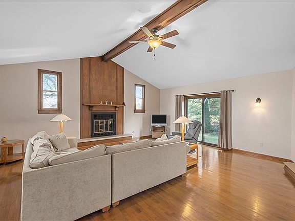 This superbly updated Jackson Twp ranch is loaded with curb appeal -The governor's drive invites you to take in the mature landscaping and serene views from the front of this residence. The hardie plank siding has a New England appeal and exudes the level of quality finishes that await. Once inside, you will be mesmerized by the beautiful tile floors that draw you into the vaulted and beamed living room with a relaxing fireplace. The dining room is directly off the living area and the sliding doors lead out to the storybook covered porch. The renovated kitchen will delight you with Gleaming Granite counters, Stainless Appliances, 2 pantries, and classic soft-close cabinets. The primary owner's retreat offers a substantial walk-in closet and the renovated bathroom feels like a luxury hotel suite. 2 additional bedrooms and an updated full bath complete the main level. Finished walk-out basement includes a family room, 4th bedroom/den, massive 3 car garage and a beautiful 1+ acre lot!