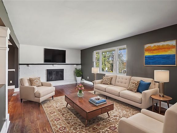 Peters Township's updated brick multi-level home welcomes its new owners! The first floor showcases an open floor plan with elegant dark wood flooring and a decorative fireplace. The well-appointed kitchen features stainless steel appliances, tile flooring, and a coordinating backsplash, with attractive triple sliding doors leading to a custom-designed covered patio.