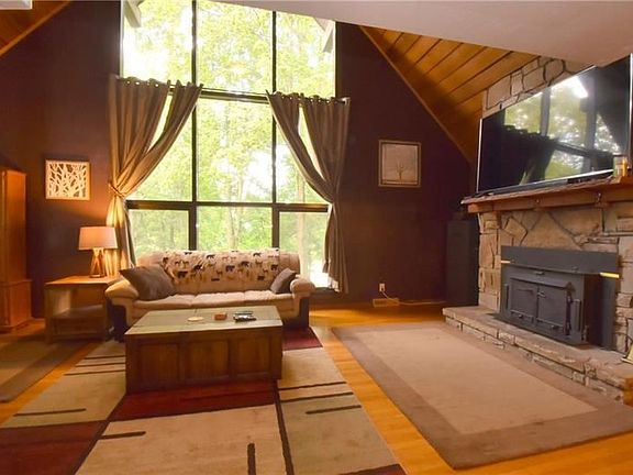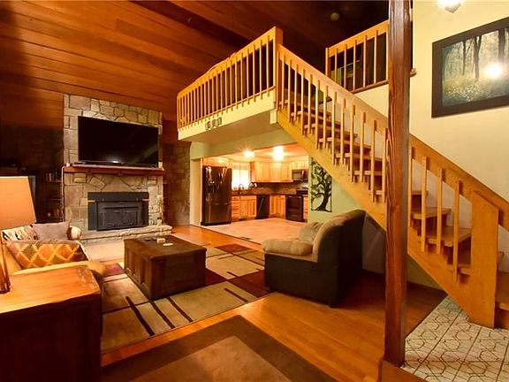 This iconic A-Frame home sits within close proximity to Washington Crown Center and easy access to I-70. This remodled 3 bedroom home is breath taking! 2 bedrooms are on the first floor with a gorgeous new bathroom with a walk-in shower and a loft master bedroom with en-suite upstairs with beamed ceilings and a great view overlooking the A-frame style windows. Your Christmas tree will look amazing in the front window!! The beautiful kitchen has all newer cabinets and appliances. Theres a game room in the lower level and two separate garages VERY COOL HOUSE!