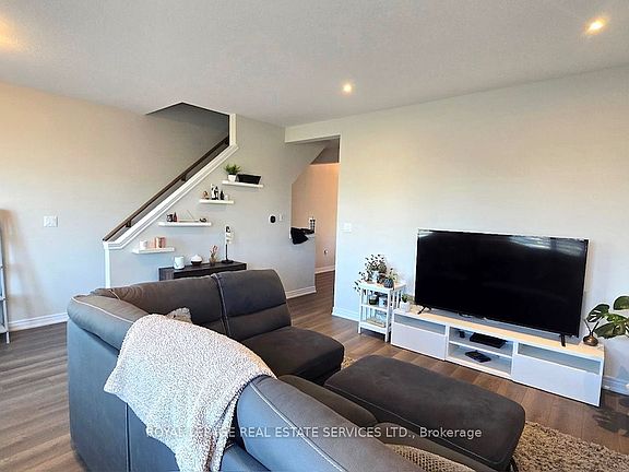 Only 5 years new, this spacious 3-storey freehold townhouse offers an excellent layout with 10' ceilings, wood flooring, and elegant modern decor throughout. 4 bedrooms, 4 bathrooms, and an unfinished basement ideal for storage or future customization. Bright open-concept kitchen/dining area with walkout to a south-facing balcony-perfect for family gatherings and entertaining. Large sized living room with two good sized windows and over look the greenbelt open field. Stunning modern kitchen with island, granite countertops, and top-of-the-line stainless steel appliances. Double-car garage plus driveway space for 2 more vehicles-4 parking spots total. Main floor private guest suite with ensuite, and convenient 2nd-floor laundry. Enjoy an unobstructed greenbelt view at the front entrance, adding privacy and curb appeal. All in a family-friendly neighborhood with quick access to highways, public transit, Costco, Metro, Shoppers, Amazon Fulfillment Centre, schools, shopping, and more. Steps to Winona Crossing Shopping Centre. Easy access to QEW and Winona Elementary school. A move-in ready home that blends comfort, convenience, and style.