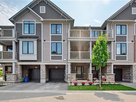 Stunning Branthaven-Built 3-Storey Townhome in Sought-After Winona/Fruitland Neighbourhood. 10 mins to the New Go Train Station Opening at the end of October! Welcome to this beautifully upgraded townhome located in one of Hamilton’s fastest-growing communities. Ideally situated just minutes from the QEW and Red Hill Valley Parkway, you'll enjoy easy access to everything you need—including trendy new restaurants, shopping, Costco, and more. This home features a bright and airy open-concept layout, complete with wide plank vinyl flooring and stylish upgraded lighting throughout. The gourmet kitchen boasts sleek white cabinetry, stainless steel appliances, granite countertops, and a modern tile backsplash. The main floor also includes a spacious family room with a charming shiplap feature wall, separate dining area, and access to a private balcony—perfect for entertaining or relaxing. The powder room has been tastefully updated with new tile flooring and contemporary fixtures. Upstairs, you’ll find two generously sized bedrooms, a convenient laundry closet, and a spacious 4-piece bathroom with a relaxing soaker tub. The primary bedroom features a walk-in closet and its own private balcony. Lovingly maintained, this exceptional home is built by award-winning Branthaven and offers quality craftsmanship, thoughtful upgrades, and a truly move-in-ready experience.