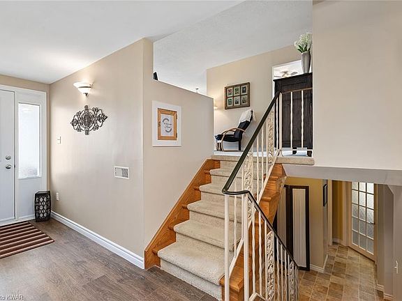 Welcome home to 288 Good Street! Located on a beautiful, oversized lot on a quiet and child friendly street in desirable New Hamburg, is this clean, updated and well-kept raised bungalow. The best of rural and urban living and a great community to raise a family with good schools and the Wilmot Recreation Complex as well as readily available amenities located nearby. Quick accessibility to highway 7 & 8, only a 15 to 20 minute drive to The Boardwalk on Ira Needles and Sunrise Shopping Centre. This lovely, well-maintained home offers 1,247 square feet and features three bedrooms, two full bathrooms, an office, a single car garage and a full basement. Come in to a large foyer, with lots of room to welcome friends and family and convenient direct access to the garage. The living room is spacious and bright and the kitchen has a great, practical layout with an abundance of cupboards as well as plenty of countertop space. The main floor adorns three spacious bedrooms with lots of natural light, as well as a beautiful renovated 5-piece main bathroom. The basement is almost fully finished and offers a large recreation room, a great place for a kids' play room or to hang out with family and friends, and a 3-piece bathroom. The laundry room is in the basement, as well as a convenient office and a practical workshop. There is lots of storage space in this house. The backyard is private, with an oversized deck and plenty of room for get-togethers and summer barbecues. The large driveway in the front easily fits six cars. Updates include: all windows in 2008, except for living room window which was replaced in 2015, owned hot water heater in 2015, front and back doors. Newer flooring in living room and dining room and completely renovated foyer as well as a 200 Amp breaker panel. This property is available for flexible possession. Don't miss out and book your showing now to view this amazing, move-in-ready home!